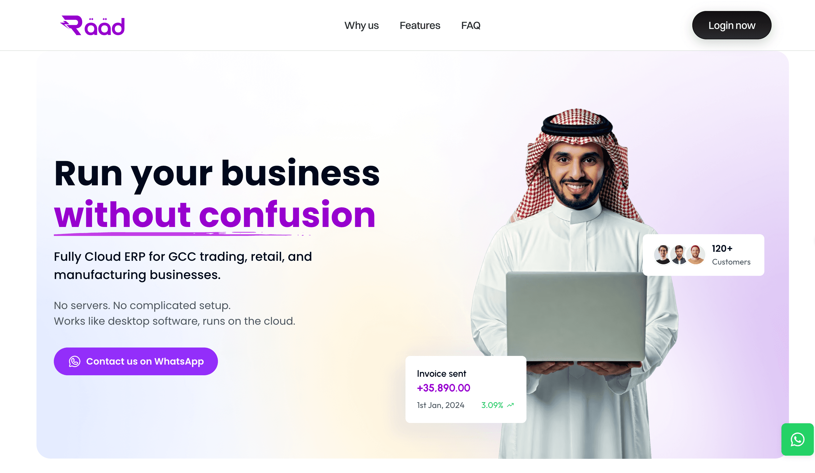 RAAD ERP is a cloud-native ERP platform purpose-built for GCC trading, retail, and manufacturing businesses. Unlike global ERPs that require heavy localization, RAAD ERP is designed from the ground up to meet regional business and regulatory needs.
